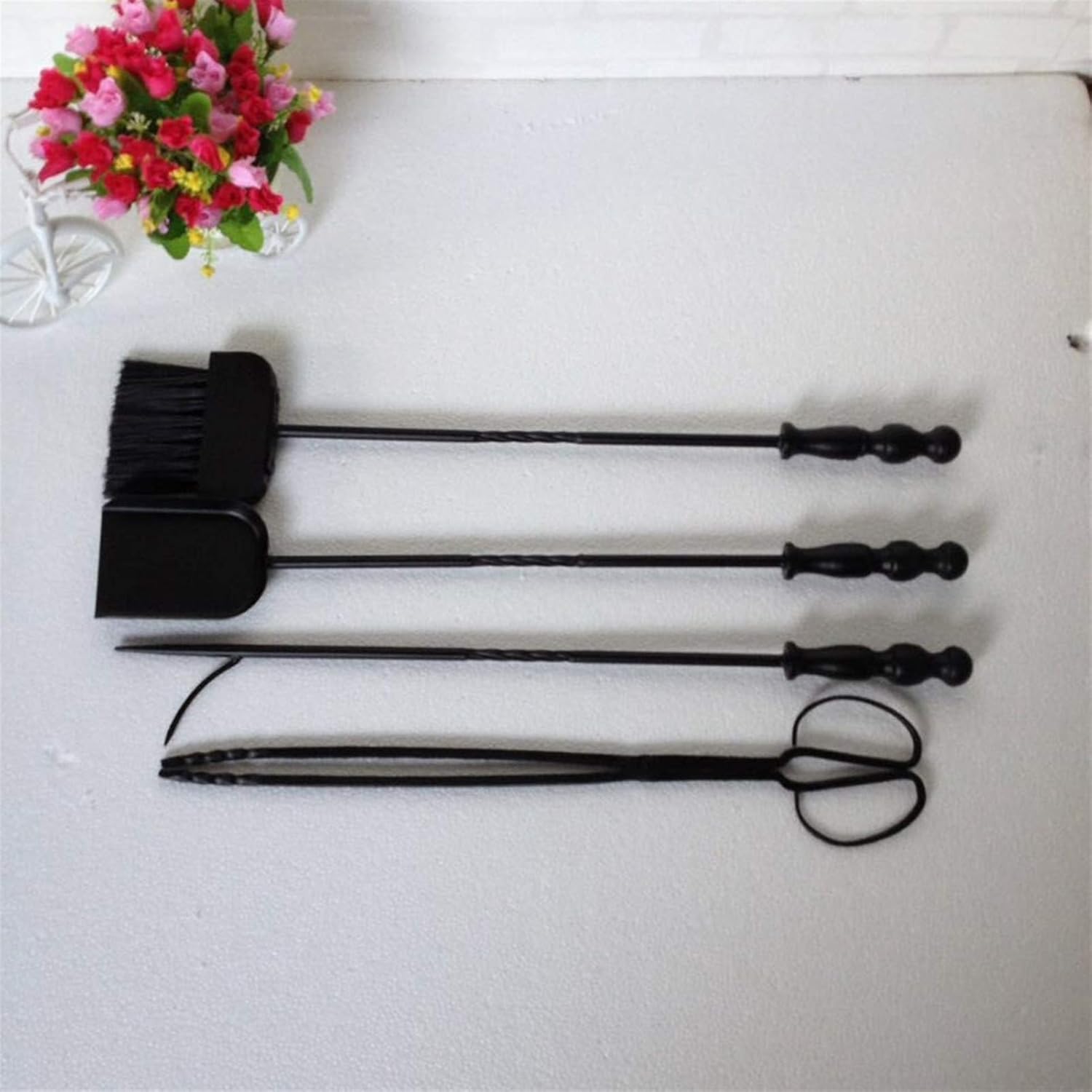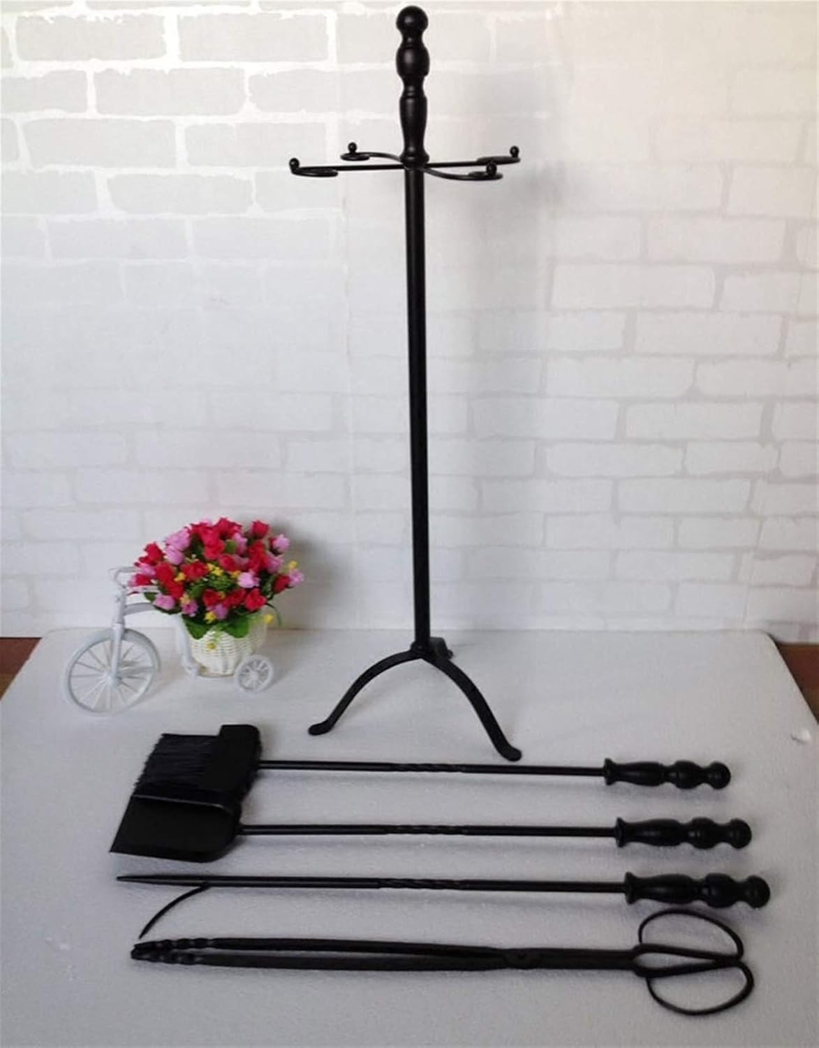 It coordinates with most fire screens, log holders and racks, or outdoor fire pit tools; robust design is stylish for both modern home decoration and country fireplaces. The fireplace tongs help to safely place kindling and reposition logs while the fireplace brush features strong bristles to easily sweep ash and debris, conveying heat in a slow speed and avoid of burning fingers. Specification: -Item Name: Fireplace tools set -Material Used: Powder coated iron frame -Colour: Black -Product Dimension: 75×2cm -Style: Vintage -Heavy Duty Package Included: Fireplace tools rack ×1 brush broom × 1 shovel × 1 tong × 1 fire pit poker × 1 grabber × 1 Features --Stylish contemporary design --easy to set up --Large capacity --indoor or outdoor use NOTE: 1. Clean with mild soap and water while the screen is cooled. 2. Due to manual measurement, there may be a difference of 1-2cm. 3. The reason computer resolution, there may be differences in color to the actual goods received prevail