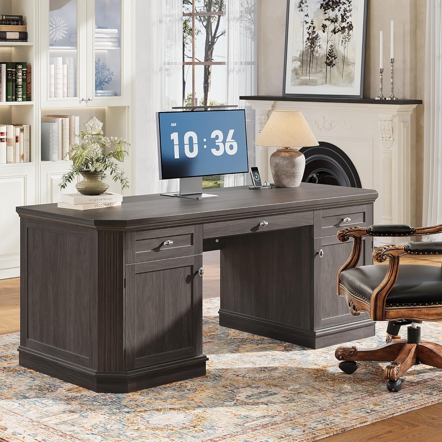 | Storage Options | 3 drawers, 2 cabinets |