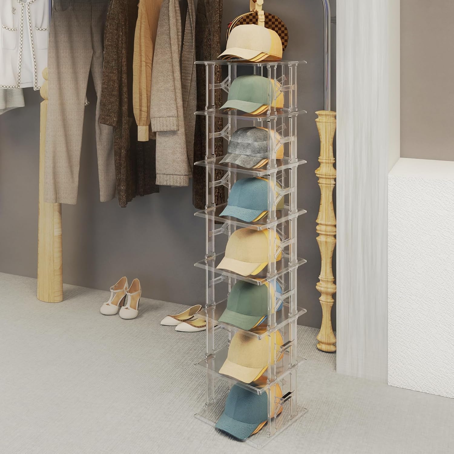 Hat Organize Box, 8 Tier (Up to 24 Hats) Stackable Clear Hat Display Case Baseball Cap Holder Stand, Hats Display Rack Freestanding