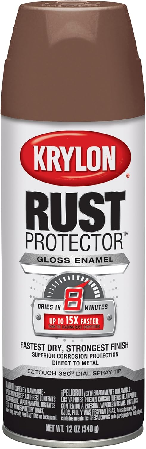 Product Description Rust protector enamel spray paint, rust Preventative, series: 69026, liquid, Almond, satin, 12 oz capacity, aerosol can packing, <7 CST viscosity, lacquer thinners, 25 sq.-Ft coverage, 40 - 80 deg F, -29 deg c flash point, 7 ph, 0.82 specific gravity, applicable materials: plaster, glass, ceramic, wicker, concrete, masonry, wood and metal. Provides direct to metal corrosion protection. Smooth, durable, rust-fighting finish. Features EZ tough 360-degree dial spray tip. Dries in 8 minutes. From the Manufacturer Introducing Krylon Rust Protector Paint-the hardworking, fast-drying rust protection that's like no other. It paints metal and guards against rust so effectively, so beautifully and so amazingly fast. Because only Krylon Rust Protector Paint has a dry time of just 8 minutes. No more waiting over 2 hours for a project to dry. No more worrying about dust and dirt compromising the finish. No more settling for the old way. Krylon Rust Protector Paint is a totally new way to conquer rust. It's true. Krylon Rust Protector Paint dries to a smooth, durable, rust-fighting finish in just 8 minutes. (That's 15x faster then the leading rust competitor.) And it hardens to a tough finish that really lasts. In fact, in a variety of corrosion tests, Krylon consistently performed better than the competition. You have put up with slow-drying products for long enough. With Krylon Rust Protector, the wait is over.