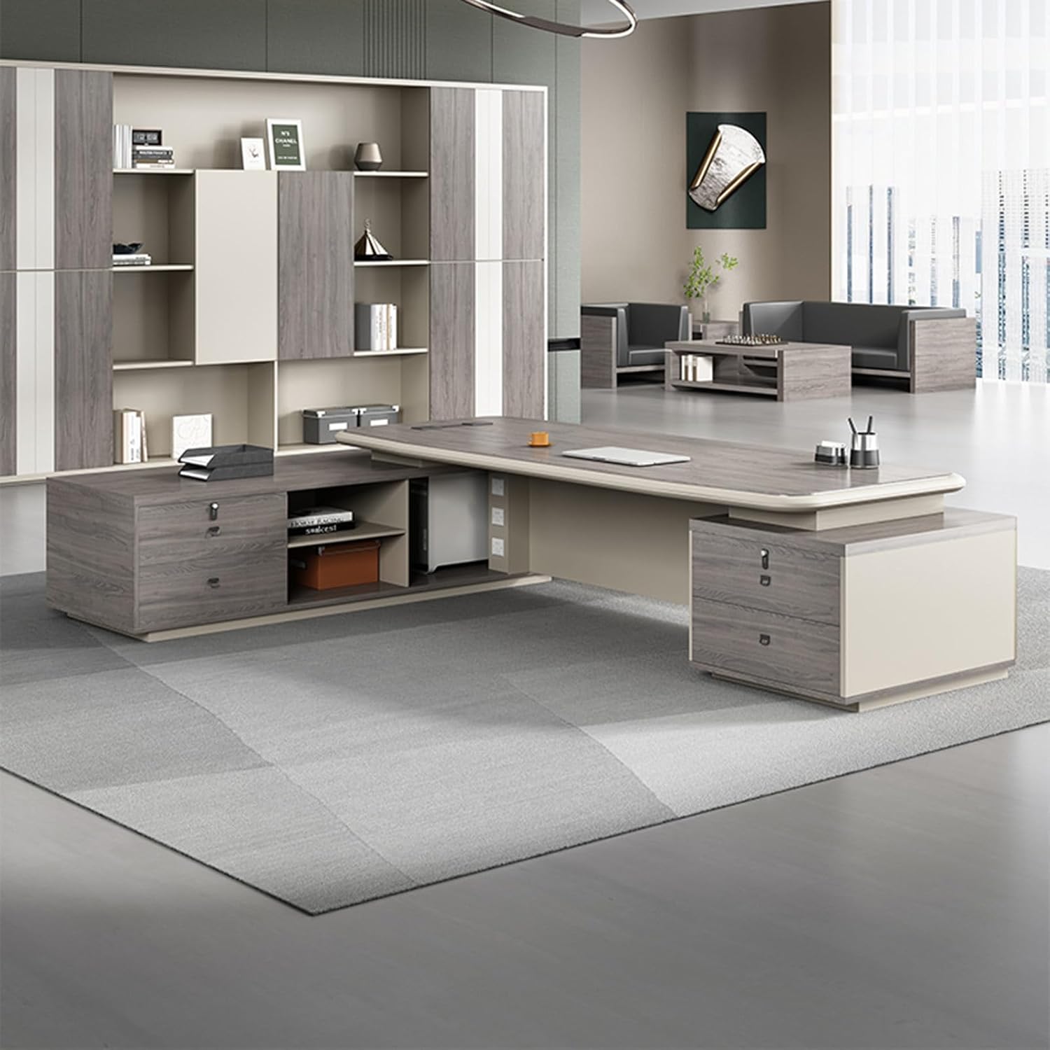 Features:Type: Computer DeskStyle: Simple and ModernWhether to assemble: NoWhether to bring a side table: YesDimensions: 240 cm (L) x 180 cm (W) x 75 cm (H)Material: Wood, MetalColor: BrownApplicable location: Office, study, bedroomWith drawer: YesPackage list:Desk x 1