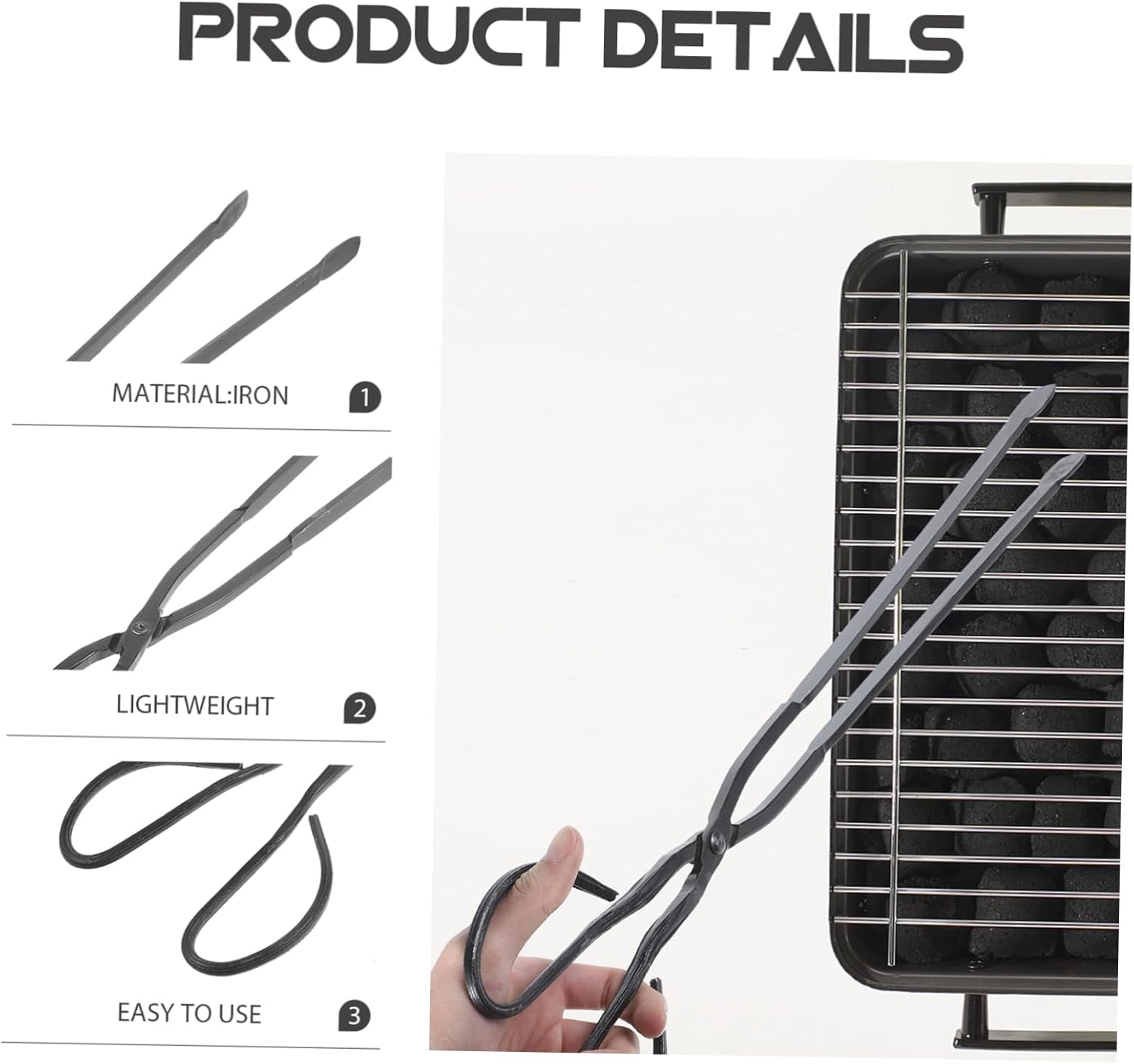 Package List 1 x Charcoal Tong Characteristics -Size:59.00X12.00X1.00cm/23.19X4.72X0.39in fireplace tongs -Material:Iron long clamp -Color:Grey portable charcoal clamp - Multi-purpose, can pick up garbage, can clip firewood or charcoal, can also be used to pick garbage. lengthened charcoal tong - Made of iron materials, durable, strong and heat-resistant, not easy to deform charcoal clamp. - This charcoal clip has a long handle. Easy to pick up, long handle design, suitable for barbecue use garbage clip. - The comfortable ergonomic handle design allows you to hold it easily and , effortlessly, and non-skid household tong. - It is suitable for outdoor barbecue, camping, campfire and other scenes, and also suitable for home use Charcoal clip.Goods Informationportable charcoal clamp Choose one for you.barbecue fireplace tong This multi-function Firewood tong is made of high class iron materials.iron charcoal clamp Suitable for camping, picnic, barbecue and other outdoor activities.firewood tong The simple design makes it easy to carry and use.Charcoal clip Easy to store and use at home and outdoors