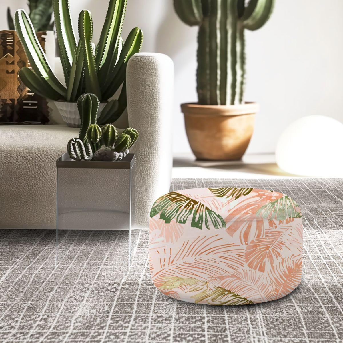 This is a very convenient pouf that can be moved at any time and is perfect for your living room or backyard patio. This cushion is available in different sizes and patterns to meet your needs in different places indoors and outdoors. It is lightweight and sturdy, adequate extra-large pouf top can meet any adult or child use, there is plenty of load-bearing capacity.Applicable scenes.Living room, bedroom, study, courtyard, terrace, children's room, office, cafe, library, etc.It can be used as a stool, when you read, work or children play, providing you with sturdy support. Also used as a spare stool, easy to seat guests. It can also be used as a footstool to give you foot support when you lean on the sofa or chair, making you more comfortable.Features.1. Cotton and linen material, comfortable and soft.2. Bottom with zipper, removable and washable.3. Highly elastic filling particles, environmentally friendly and tasteless, full of filling, strong and not easy to collapse.4. Lightweight and easy to move.5. Strong load-bearing capacity.6. Extra large sitting stool, can meet the use of different people.Attention.1. Feel free to contact us if you have any questions.2. The size is measured manually, the size may have a slight 1-2cm deviation.