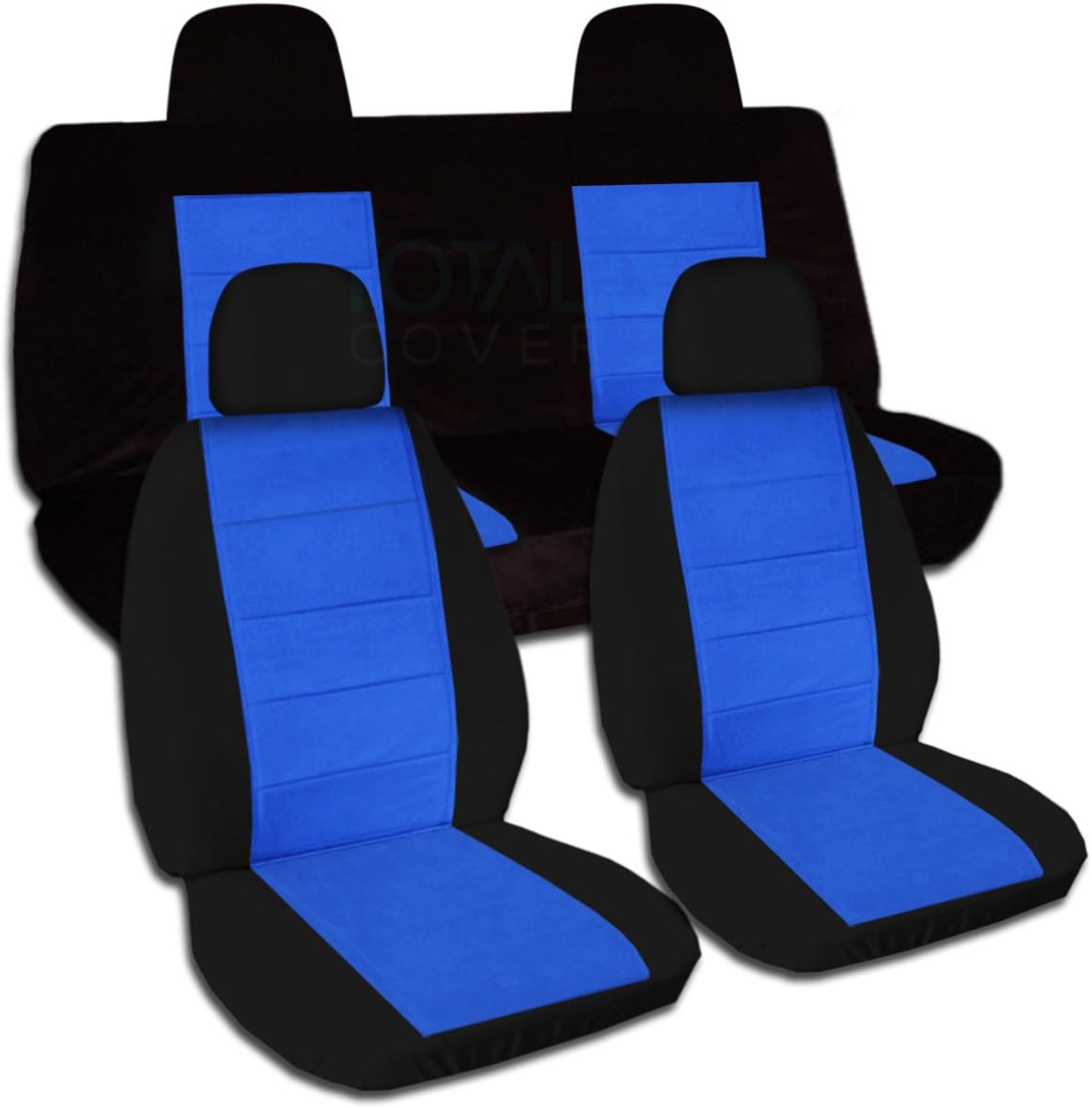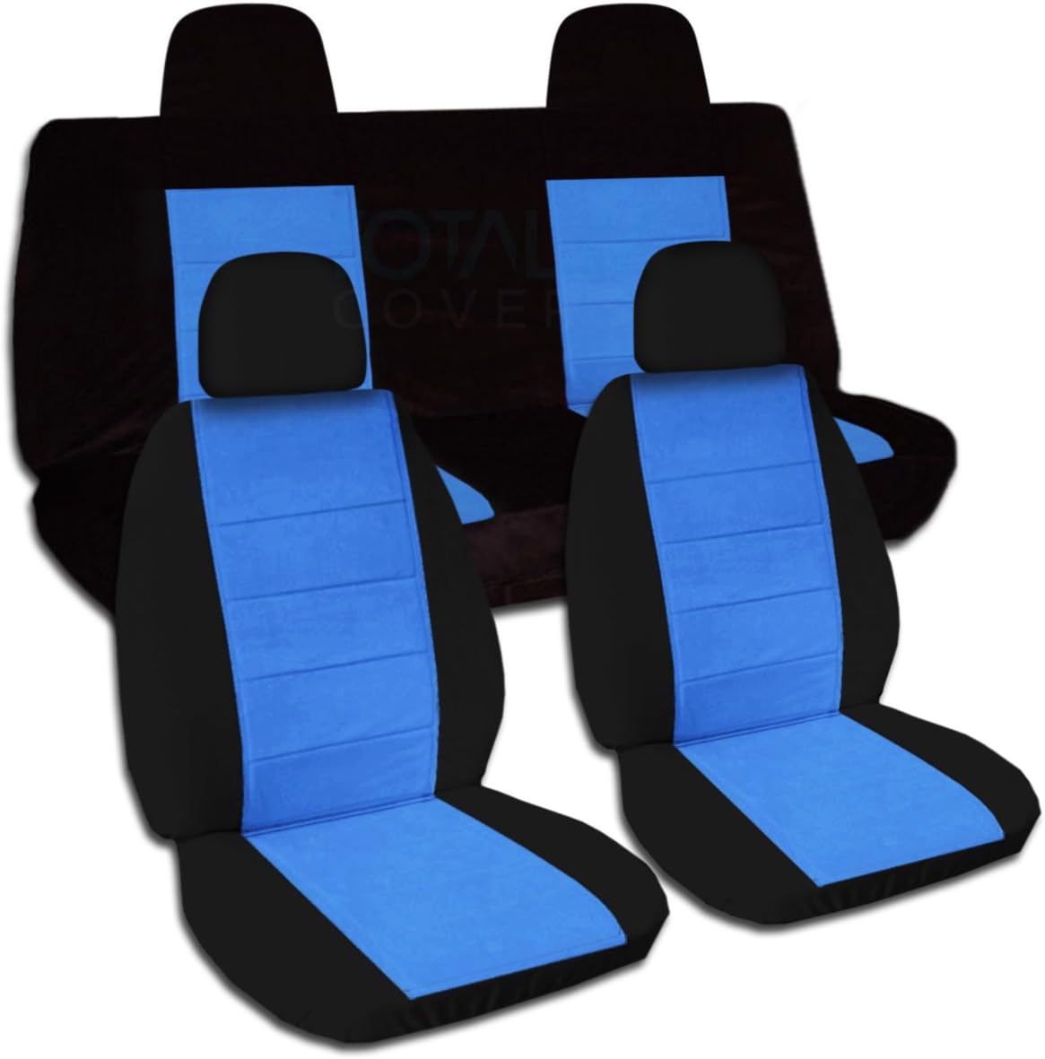 A full set of front and rear, black and blue gray seat covers for a 2010 to 2017 Jeep Compass and Jeep Patriot with a rear bench with split back and bottom. Be sure to visit our storefront ("Totally Covers") where you can find the largest selection of seat covers, to satisfy even the most demanding of tastes. If you can't find what you are looking for, please contact us ("Totally Covers") We can make seat covers for ANY car, truck, van, RV or SUV in a variety of 145 colors and prints, and even add your name/text and logo/design on them!
